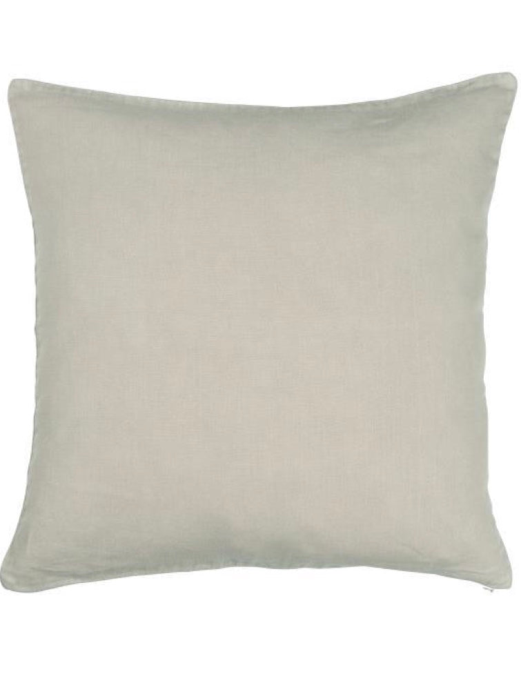 Der Bezug ist aus 100% Leinen gewebt, mit Reißverschluss zu schließen und wird mit Inlay Kissen geliefert.