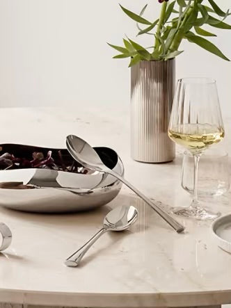 Diese elegante Besteckserie ist ein neues Design in einer der bekanntesten Kollektionen von Georg Jensen: Cobra. Die Philosophie von Designer Constantin Wortmann, Design nie zu ernst zu nehmen, spiegelt sich in seiner gesamten Arbeit wider, auch in seiner jüngsten Erweiterung der Cobra Kollektion. Das wellenförmige charakteristische Design findet sich im gesamten Besteckset wieder. Die einzelnen Teile sind leicht und das Besteck liegt angenehm in der Hand.